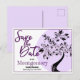 Den här familjeåterföreningen "Save the Date" (Spara datum) innehåller ett art nouveau svart och lila modernt teckningsarbete träd med sträng ljus. Fyll i fält i mallen för personlig information, ta bort text och/eller klicka på anpassa för att välja ett typsnitt färg, storlekare och stil som du vill använda.