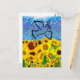 Ursprunglig sammansättning inspirerad av den ukrainska flagga. Solblommor och sparkler och en fredsduva ger hoppfulla framtidsutsikter. Stanna!