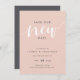 Måste du skjuta upp eller schemalägga om bröllop? Låt gästerna få veta med de här eleganterna i chicens rosa, mjukt grått och skarpt vitt. Utformningen har "spara vårt nya datum" överst med ditt nya bröllop-datum och bröllop-webbplats under.