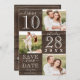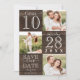 Den här rustika, moderna och enkla bröllopskortet "Save the Date" är perfekt för det samtida och trendiga evenemanget. Designen inkluderar tre huvudfoton av det vackra paret, en stor datummarkering och frasen "Save Our Date", som alternerar mellan ett signaturhandskriftskrift och ett unikt serif-teckensnitt ovanpå en brun, rustik bakgrund av lada trä. På baksidan finns en rand med pinstripes och ett monogram för paret. Det är elegant, unikt, trendigt, djärvt och klassiskt; den perfekta designen för att imponera på dina gäster.