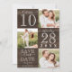 Den här rustika, moderna och enkla "Save the Date"-kortet för bröllop är perfekt för det samtida och trendiga evenemanget. Designen inkluderar tre huvudfoton av det vackra paret, en stor datummarkering och frasen "Save Our Date" som växlar mellan ett signaturhandskrivet typsnitt och ett unikt serifferat typsnitt ovanpå en brun, rustik bakgrund av lada trä. På baksidan finns en rand med tunna ränder och ett monogram för paret. Det är elegant, unikt, trendigt, djärvt och klassiskt; den perfekta designen för att imponera på dina gäster.