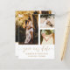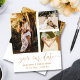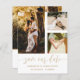 Elegant och enkel spara vårt datummeddelande. Den här mallen har plats för 3 av dina favoritfoton i par i vitt med coola-handskriven calligrafi i guld. Enkel att redigera med din egen unika information.