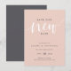 Behöver du skjuta upp eller boka om ditt bröllop? Låt gästerna veta med dessa eleganta kort i chic blushrosa, mjuk grå och krispigt vit. Designen har "spara vårt nya datum" högst upp med ditt nya bröllopsdatum och bröllopswebbplats nedan.