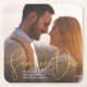 Spara daterabröllopmeddelandet. Modernt handskrivet skrivar slår calligraphy i härlig ljus gult över fullt-blöder fotoet. Fullständigt mångsidigt göra-den-dig stilorientering. Justera lätt textinslagen för formatet, för stil och för placeringen allra.