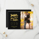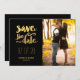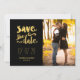 De här Faux Gold Foil och Black Modern Photo Save the Date Card with fold script typography är en fin kombination av glamor och roligt. . Elke Clarke ©