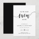 Behöver du skjuta upp eller boka om din bröllopsdag? Låt gästerna veta med dessa eleganta kort i chic svart och vitt. Designen har "spara vårt nya datum" högst upp med ditt nya bröllopsdatum och bröllopswebbplats nedan.