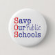 SOS Spara Vårt aktivistiska budskap från Skolor på en attraktiv knapp. Bilder är upphovsrättsskyddat © Sandy Long, med alla höger reserverade. Den här designen finns på många andra objekt i roligten i mitt konstaktivt arkiv. Jag förespråkar ökat finansieringsstöd till våra offentliga skolor, högskolor och universiteten och stöder ökade statliga intäkter för att garantera skolfinansiering. Säg nej till kuponger. Fri offentlig utbildning är vår höger.