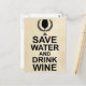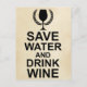 Spara Vatten och Drink Vin. Det är en humoristisk vädjan till spara vatten, baserat på den allmänt förekommande "Behålla Lugn"-poster som den brittiska regeringen införde 1939. Den här designen presenteras över en åldrass pappra bakgrund. Det kan enkelt tas bort och ersättas med en regnbåge med lätt färg.