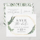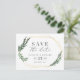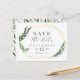 spara vattenfärg blommande blad datum postkort. Med vackra vattenfärgblad och modern fet stil är denna spara datum inbjudan helt rätt på trend och perfekt för alla säsonger. Del av en bröllopssvit