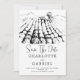 Ett jordnära vineri bröllop spara datum, med elegant, typografi och vinodling.