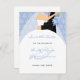 Vinter Spara vykorten Datum med en brid och groom på en blå snöflingerbakgrund. Mall som är lätt att använda - ange bara namn på Bride & Groom, tillsammans med bröllop-datumet i det utrymme som ges. Bild © JD Digi Designer