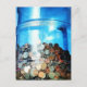 Mynt, kvartaler, nickel, dimes, pennies, pengar sparade i en 5-liters vattenkanna. Semestefond. Vykort.