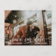 Elegant och modern SPARA VÅR DATE-vykort för att skicka dina gäster. Vit skriptkalligrafi med bild / bild / bild. Onlinens personlig - mallar för redigering / DIY. Lägg till texten framför och bakom kortet. Budgetvänlig. Kontaktdesigner för speciella förfrågningar.