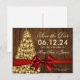 Rustic Bröllop "Save the Date"-design med Julgran, Ljus & Red Ribbon på trä, egna namn och datumtext. Imponera på din familj och dina vänner med den här snyggten och den moderna designen. Helt anpassade! Lätt att använda och lätt att anpassa.