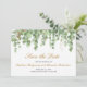 Fråga dina vänner sparan om din bröllop-dejt med denna vackra bröllop spara datum-annonskonstruktion med vattenfärgen eucalyptus foliage med elegant guld-folie i glitter.