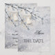 Ett romantiskt vinterbröllop Spara datumkortet med en ljus tänd lantern på en vinterbergscen i snö.
