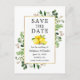 Modern Watercolor Eucalyptus Greenery Lemons Guld Ram sparar Förlovningen Postcard