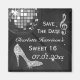 Elegant, glamorös sweet sixteen spara datum magneter. Trendig glitz och glamor Sparar datumen för din 16:e födelsedagsfestens firande. Vackra, bländande silver-gnistor diamanter som använder juveler, funky svart och silver retro disco spegel boll och ett silver-glitter som stileterar mot högklackade mode-skon på en chic svart, sparkad bakgrund. En söt, klasslig, moderiktig, snyggt, söt spara datum magneter för tonårsflickor. Flickan tonåringars kommer att kärlek den här coolan, roligt, funky, gigantisk design för sin glamorösa musik och dansa party.