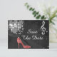 Svartsidig dubbla Spara Datumkorten med platta kort som skrivs ut på inbjudan pappert. Kort för svar på personlig, elegant anpassningsbar med glitz och glamor. Kvinnans vackra Svarta och vita dubbla sparar datumet med en funky retro disco spegel boll, glamortryckta nosbilder av rhinestoner, glitter, sekviner, diamanter på juveler gnistra högklackar stilettos mode och glittery musik noter/musik noter med gnistor på ett vibrerande svart och vitt ljus och gnistor bakgrund. Chic, klass, söt, gigantisk, modernt kort för födelsedagsfester, Söt 16 Party, Quinceanera, möhippor, bachelorette Party/hen night m.fl. i trendig, modernt färg/färg. De här grooverna, finare, snyggt, sofistikerad, söt, flickans e-kort är dekorerade/tryckta på båda sidor.. OBSERVERA: Alla inbjudningar till Zazzle har platt tryckt bilder. Om du behöver hjälp med att anpassa din produkt kontaktar du mig genom min butik och jag kommer att vara lycklig för att hjälpa till.