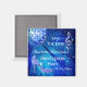 Elegant, glamorös Quinceañera Birthday spara datum magneter. Trendig glitz och glamor Sparar datumet för din quinceañera födelsedagsfest firande. Vackra, bländande silver-glittrar diamanter på musikaliska anteckningsbilder av juveler, funky blue retro disco spegel boll och silver glittery stiletto high heel mode sko på en chic blå bakgrund. En söt, klasslig, modern, snyggt, söt spara datum magneter för tonåringar. Tonåringar kommer att kärlek denna coola, roligt, funky, gigantisk design för deras glamorösa musik och dansande quinceañera party.