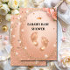 Den här lysande designen har gnistrande accenter i persiko-glitter på en mjuk persikobakgrund, som på ett vackert sätt visar små fötter i glitter, baby, ro och tiarra. Perfekt för att välkomna en liten prinsessa... Den här elegantens inbjudan tillför lite glamor till ditt speciella evenemang. Fira i stil och gör din babydusch oförglömlig med denna lyxiga, öga-fångstande inbjudan!