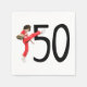 Föreställ dig en dynamisk och kraftfull illustration med en 50-årig självsäker kvinna i topp i fysiska villkor. Hon är i mitten av en mäktig högkicka, klädd i snyggtens atletiska bära som belyser hennes styrka och rörlighet. Hennes uttryck är fast beslutsamt, vilket förkroppsligar en "kan-göra-attityd" som trotsar åldersrelaterade stereotyper.