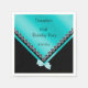 Vackra födelsedagsfester pappra servetter för alla åldrar för kvinnors och flickors födelsedagsfester. Den här moderna, sofistikerade och mycket elegant designen har en svart och teal kuvert stil som dekoreras med glatt glitzy-diamanter med en snöre-armbåge med teal, med dina händelsedetaljer. All text är helt och hållet anpassade för att uppfylla dina krav. Om du behöver hjälp med att anpassa produkten kontaktar du mig genom min butik och jag kommer att vara lycklig för att hjälpa dig. Jag har också matchat inbjudan i min affär. Bow och ribbon bilder som köpts från digital design för elena.