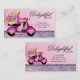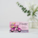 Muffinvisitkort med den toppna gulliga sparkcykelkvinnan, sugary söt glitterisläggning och söthjärtagodisen.