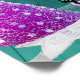This economical artwork poster has a sparkle like pink Christmas tree with silver stars with a black cat wearing a pink bow with Merry Christmas text in bold colourful letters in a teal coloured room.