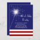 En roligt röd, vit och blå 4:e juli-inbjudan med rand och gnistor. Den här inbjudan kan enkelt anpassas för en företagshändelse. Kontakta oss på prettyfancyinvites@gmail.com om du behöver hjälp med det.