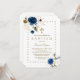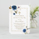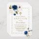 Utformning av elegant med vattenfärgen blåa blommor och blommor med guld som skisserats av flodmynningen guld, kor, faux glitter-gnistor ram, på vit bakgrund. På baksidan av vita blommor bouquet och kor. Använda Anpassa verktyg om du vill lägga till din information. Om du vill ha matchande artiklar kan du besöka min New Baptism Christening Firande Collection.
