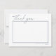 I den här samlingen används ett handskrivet, namnteckning teckensnitt i kombination med geometriskt ramar, gnistrande bakgrunder och lush-blommigtar för att ange en varm och intim ton för bröllop. Det här "Tack"-kortet i bröllop, med ett enkelt bildat foto på en vit bakgrund, har också namn, bröllop-datum och ett personligt tack för att du har sänt ett glatt blått bakgrundsmeddelande på motsatt sida. Sök i ID889 om du vill visa alla produkter i den här uppsättningen för bröllop.