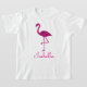 Anpassa ditt namn, roligt T-Shirt. Vackert glatt glamorös rosa glansig glitter-gnistor är en exotisk flamingofågel. Foto av shock rosa-miniatyrbilder är inte glitter!