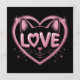 This playful and charming illustration features a heart-shaped cat design in soft pink hues. The letters "LOVE" are beautifully styled with a heart-shaped "O" and glittering accents. A delightful, whimsical vibe with touches of celestial stars adds a dreamy, retro feel. Perfect for adding a touch of warmth and affection to any space, this piece blends cute, feminine energy with a nostalgic touch of vintage design.
