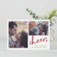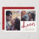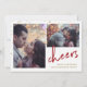 Det här moderna helgdag-kortet innehåller två av dina personliga foton, med faux guld sprinkles och ord "cheers" i handskript med elegant. Kortets baksida är röd med fler faux guld sprinkles.