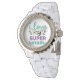 Sparkling Diamond Bezel Super Mom White Link Watch Armbandsur