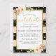 Denna eleganta moderna bröllopsamling presenterar en djärv svart, och persikan görad randig bakgrund med guld pricker strilat längs gränsen. Att tillfoga ett kvinnligt handlag, gränsar delikat vattenfärgblommor inbjudan skuggar in av rodna rosor och persika. Skräddarsy bakgrundsfärgen för att matcha ditt bröllop- eller händelsetema. Besöka våra "Sparkling rand bröllopsamlingen för att beskåda alla matcha produkter.