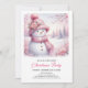 Sparkling Pink Snowman Kids Christmas Invite Digit Inbjudningar