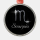 Skrämglat glam-runda prydnadsföremål har zodiak - / astrologisk symbol för Scorpio i diamantnos i noshörningar på svart bakgrund. Scorpio-tecknet är avsett för dem som är födda den 23 oktober-21 november