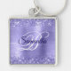 Sparkly Glittery Periwinkle Foil Finare Monogram Fyrkantig Silverfärgad Nyckelring