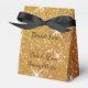Guld glitter glamorös bröllopsfest-favör. Personlig för att tacka gästerna. Anpassningsbar tack för ett budskap från brud och brudgumm. Golden glittery print with sparkly sparkles and glimmers plus elegant black ribbon bow. Anpassadets text. Luxus glitzy-tematdesign med snyggt-typografi. Underbar för finare giftermål.
