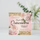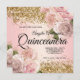 Sparkly Guld Glitter Rosa Blommigt Quinceañera Inbjudningar