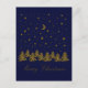 Sparkly guld, Julgran, måne, stjärnor på blå Helg Vykort