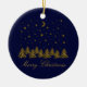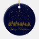 Sparkly guld, Julgran, måne, stjärnor på blå Julgransprydnad Keramik