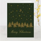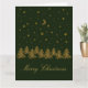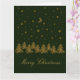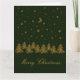 Sparkly guld Julgran, måne, stjärnor på grönt Kort