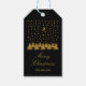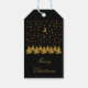 Sparkly guld Julgran, måne, stjärnor på svart Presentetikett