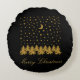 Sparkly guld Julgran, måne, stjärnor på svart Rund Kudde