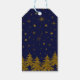 Sparkly Guld Julgran, stjärnor, snö på blå, på blå Presentetikett
