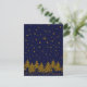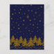 Sparkly Guld Julgran, stjärnor, snö på blå, på blå Vykort