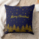 Sparkly Guld Julgran, stjärnor, snö på blå T Kudde